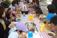 飯ごうでご飯を炊いたり、野菜の皮をむいたり、ドキドキしながら包丁で切ったりして作りました。自分たちでつくったカレーはとってもおいしく、笑顔がいっぱいあふれていました。