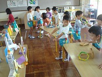 お母さん達がバザーで買い物をしている間、子ども達は魚釣り、輪投げ、ボーリング、折り紙やさん、お菓子屋さん、いろいろなお店を回って楽しみました。