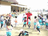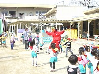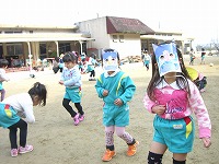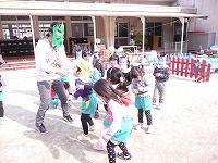 豆を投げている間にすっかり鬼さんにも慣れ、そばに行ってお話ししたり、追いかけっこをしたりして楽しんでいた子ども達です。