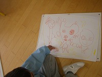 「これが、赤鬼さん、これが僕で、先生が豆くれたからえい!って投げてんで」