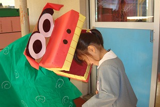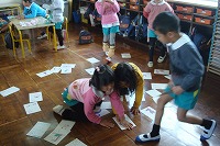 自分たちで作った手作りの大型かるたをつかって遊んでいます。