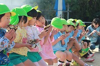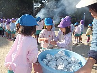 先生の「焼けたよー」の言葉に「やったー」と大喜びで集まってきます。