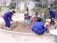大住中学校の職場体験でたくさんのお姉さんが来てくださいました。楽しみに待っていた子ども達は大喜び!「一緒にあそぼ~」「こっちへ来て」「これ見て」などなど、お姉さん達を誘っては、一緒に遊んでもらって大満足でした。