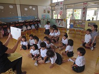 降園前のほっとしたひと時に、絵本クラブのお母さんが来てくださり、