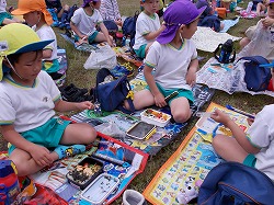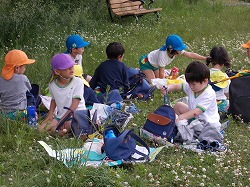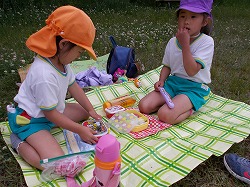 思いっきり遊んだ後は、皆でお弁当を食べました。