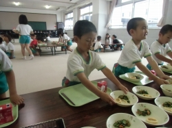 「おいしかったね!」と小学校に期待をもち、とっても満足そうな子ども達でした。