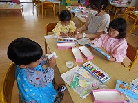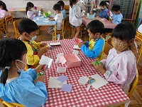 年長組は、折ったり、切ったり、貼ったりしながら、自分なりの工夫も