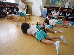 体を動かして遊ぶ時には、周りにいた友達もみんなで一緒に「ごろん。ごろん。ごろん。」や「くる。くる。くる」と真似っこ♪