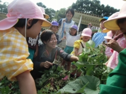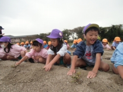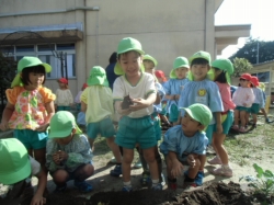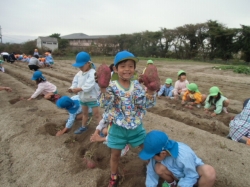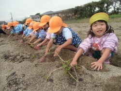 年中・年長児は、幼稚園近くの、たくさん栽培されている畑で、お芋ほりをさせていただきました。