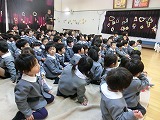 初めてのクリスマス会に「どんなのが始まるのかなぁ」とドキドキのちいさい組さん。