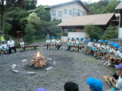 少し薄暗くなってきて、楽しみにしていたキャンプファイヤーです。