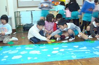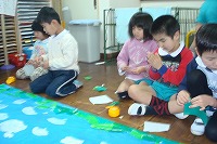 劇をするのに道具が必要!とみんなで協力したり、相談したりしながら劇に使う物を一生懸命作っています。