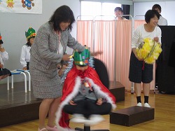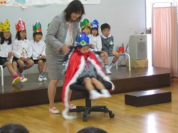 冠をかぶった誕生日の子ども達です。冠が光っていますね。