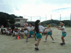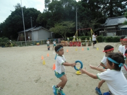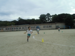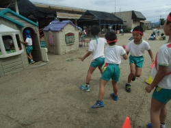 年長児の子どもたちは、運動会に向けてリレーごっこも楽しんでいます。