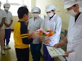 同じ日の給食時間には、各学年からのプレゼント渡しを行いました。