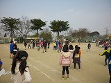 アジサイグループ(縦割り班)ごとにチームを作り、1年生から6年生までが同じコートに入り熱戦を繰り広げました。