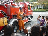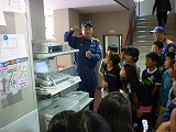各種消防車の説明を聞いたり、通信指令室や仮眠室、消防事務室を見学したり、署員の方のお話を聞いたりしました。