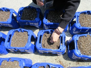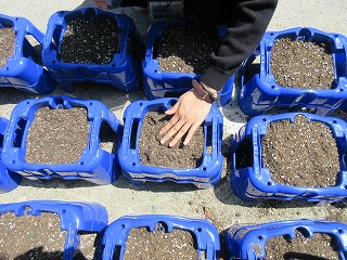 きょうは 1ねんせいの せんせいたちが あさがおの たねを まきました。 ほんとうは 1ねんせいの みんなと たねを まく よてい でしたが がっこうが おやすみなので せんせいたちが まいたようすを しょうかいしますね。