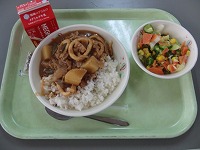 今日の献立は いか、れんこん、さやいんげんなどがたくさん入った‘かみかみカレー’