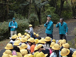 11月14日(木)、甘南備山保存会の方にご協力いただき、甘南備山に登りました。