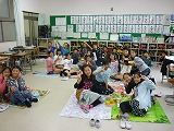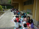 1年生は体育館横、3年生は体育館、5年生は各教室で、自分たちが持ってきたお弁当箱に入れた給食を、おいしく食べました。入れ物が違い、いつもと違う雰囲気の中でのお弁当給食はとても楽しそうでした。 5年生は、運動場のコンディションが悪かったので、教室で実施となりました。 金曜日に、2・4・6年で実施する予定です。