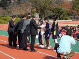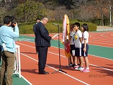 ■12月7日(土)、「第7回やましろ未来っ子小学校EKIDEN」が府立山城総合運動公園「太陽が丘」で開催されました。■薪小児童代表2名が堂々と選手宣誓をした後、駅伝がスタートしました。各地の予選を勝ち抜いた強豪の27校 (宇治7校、城陽3校、久御山1校、綴喜8校、相楽8校)のチームが、陸上競技場周辺の起伏の激しいコースに挑戦しました。■1区は約2.1km、2~6区は1.7kmを男女6人が襷を繋いで力走し、見事に“優勝”を獲得しました。それも大会記録を更新して、総合記録40分26秒で優勝です。持久走レース(トラック1,500m)でも男子が5分20秒(第7位)、女子が5分30秒(第1位)に輝きました。■日々練習してきた子ども達の努力が実を結びました。また、子どもを見守り支えていただいた保護者の方々、地域の皆様の応援のお陰です。ありがとうございました。■第5回大会でも薪小が優勝しています。よき伝統に育ってくれれば、また素晴らしいです。