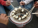 2月6日(木) 3年生は社会科の学習で「昔の道具」について学習しています。今日はたくさんある昔の道具の中から『七輪』を使って、炭火おこし体験をしました。