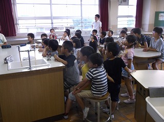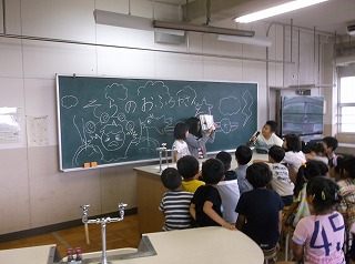 7月11日(木)図書委員会によるお話会を行いました。あいにくの雨の日、昼休みの時間を使って、図書委員会の児童が、絵本の読み聞かせを行いました。理科室には、低学年を中心に大勢の児童が集まって、委員会の皆さんが読んでくれるお話に聞き入っていました。こんな雨の過ごし方もいいものですね。