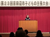 12月7日(日) 13時30分から中央公民館で「第23回京田辺市子どもの主張大会」が開催されました。市内児童生徒の日常生活や学校での体験、考えや主張の発表の場を設け、社会の一員としての自覚を高め、次代を担う子どもの健全育成の理解と協力を深める機会として開催されています。