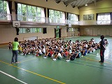 3,4,5,6年生の各色(赤・白・青・緑)代表の子どもたちに代表選手としての心の持ち方、基本的なリレーのルールやバトンの渡し方についての話がありました。 これから練習を積み重ねて、運動会本番では見事なバトンパスを披露して欲しいです。