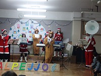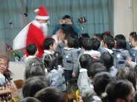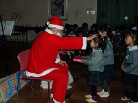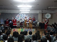 12月15日〔木〕 今日は薪幼稚園のクリスマス会があり、幼小連携で教頭先生がサンタさんで登場、園児に大喜びで迎えられました。サンタさんの得意!、スーザホンも入り、ジングルベルの演奏もありました。