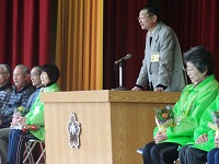 お礼のお花やお手紙を渡しました。安全ボランテァアさんを代表して、赤井さんにお話を