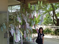 今週から、玄関や1年生の廊下で七夕の飾りが風に揺れています。1年生は学年で笹飾りをつくり、一人ひとり短冊に思いを書き込みました。他学年は、校長先生から配られた短冊に願いを書きとめ、玄関先の笹に吊るしました。願いがかなうといいですね。
