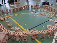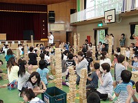 3年生は魔法の板‘カプラ’での集団遊びでした。子ども達は保護者に囲まれ、夢中になってカプラを組み合わせ、塔と創ったり、グループでブリッチを作っていました。