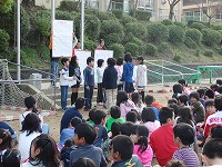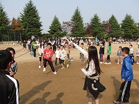 11月14日(月)の5時間目に、延期となっていた児童会が計画した11月集会(長縄とび大会)が開かれました。この集会はこれまでアジサイグループ(1年から6年までの異年齢集団)で昼休み等に練習してきた長縄とびを競うもので、赤、白、青組毎に跳んだ回数を競い、最後に、協力し多くを跳んだグループには児童会役員から表彰状が送られました。運動場いっぱいに広がり、1年から6年生まで、楽しいひと時を過ごすことができました。友達の輪が学級や学年を超えて広がるといいなと思いました。
