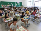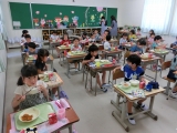 先週、無事に入学式を行い、小学校生活をスタートさせた1年生は、今日から給食開始となりました。