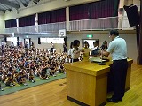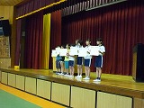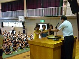 学校長講話の後、8月1日(金)から3日(日)に行われた全国小学生ハンドボール大会で4位入賞した女子チームの表彰と、8月11日(月)に『もったいない子どもポスター展』で各賞を授賞した3名の児童への表彰を行いました。 今回表彰された子どもたち以外にもこの夏、芸術面・スポーツ面で多くの子どもたちが活躍していました。これからも努力を重ねて、様々な分野で大きく羽ばたいていって欲しいです。