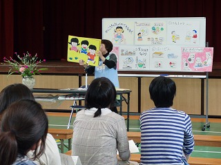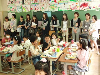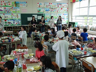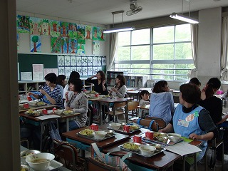 昨日、5年生が林間学習に行っている間に、1年生保護者を対象とした給食試食会と田辺小学校の速水栄養教諭さんによる学校給食・食育に関する講演がPTAの主催でありました。