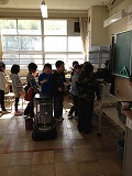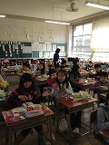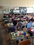 市教委から、西村前校長先生を含めて3名の方が視察に来られました。子ども達に優しく声をかけられ、子ども達が楽しくおいしそうに会食している姿に微笑んでおられました。