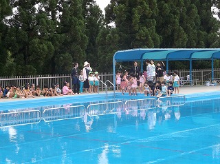 7月12日(金)薪幼稚園の園児が小学校のプールを使って、水泳体験を行いました。この取組は幼小連携の一貫として行うもので、施設にプールをがない幼稚園が、小学校の小プールを使って水泳体験を行うものです。この日は、曇り空でしたが、子どもたちはとっても楽しそうに水泳体験を行っていました。来年、小学校に来るのを心待ちにしています。