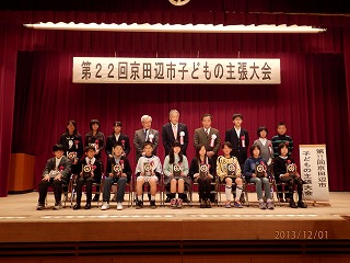 12月1日(日)13時30分から、「第22回京田辺市子どもの主張大会」が中央公民館大ホールで開催されました。 市内の9小学校、3中学校の12校から各校代表1名、延べ12名が日常生活や学校などで体験したことや考えていることなどを大勢の人の前で堂々と主張していました。 薪小6年男子の『ぼくの将来の夢』も体験に基づいた堂々とした立派な主張でした。