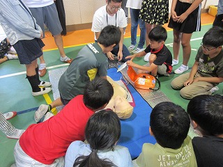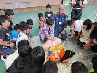 10月4日(金)に5年生の児童が救命入門コースを受講しました。消防署から来ていただいた指導員の方々からAEDの使い方を教えていただき、実際に2人組になり、心臓マッサージやAEDを使いました。体験学習を通して、自分たちにも救える命があることや命の大切さに気付いていました。