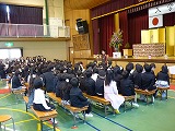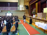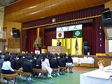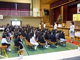新入児たちは保護者の方々に手を引かれ登校し、待ちに待った入学式を迎えました。