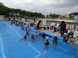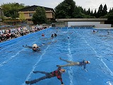 水への落ち方、川岸への上がり方、ペットボトルを使っての浮き方など実際に体験することで「もしも」の時、少しでも冷静に行動できるようになればと思います。