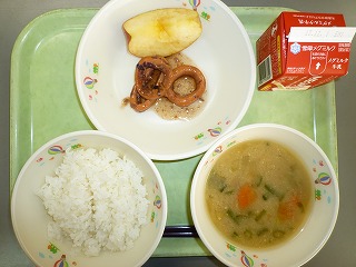《いい歯のこんだて》 ごはん 牛乳 いかの照り煮 根菜のみそ汁 くだもの(りんご)