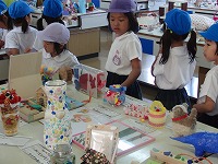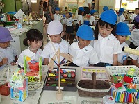 9月5日(水) 昼間休みに、お隣の幼稚園児が、夏休みの作品展を見学にやってきました。