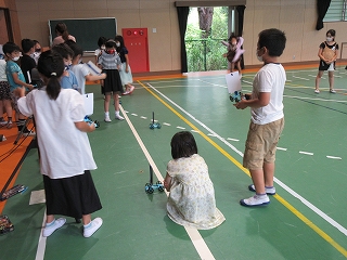 3年生の理科では「風とゴムの力のはたらき」を学習しています。送風機で送る風の強さを変えて、車の動く距離を調べました。実験の予想を立てたり結果をまとめたりして、活動しながら意欲的に学習に取り組んでいました。