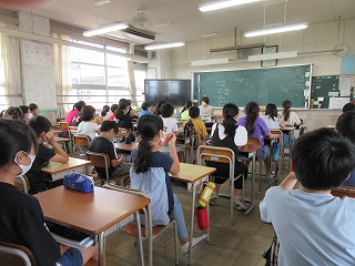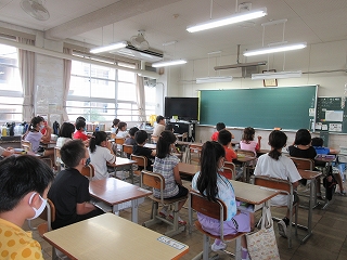今日は1学期の終業式でした。長い梅雨の時期や大変暑い日々も毎日元気に登校して頑張って学習したり活動したりすることができました。放送で行った終業式では、校長から、1学期の児童たちの頑張った様子や、夏休みには早寝早起きなど規則正しい生活を心がけること、夏休みにしかできない体験や計画的に学習すること、充実した夏休みを過ごしてほしいことなどについて話をしました。また夏休みのくらしについて、担当の教師から話をしました。明日から夏休みです。健康に気を付けて過ごし、2学期の始業式に元気な笑顔で登校してくれることを楽しみにしています。最後に保護者の皆様、地域の皆様にはいつも温かいご支援・ご協力をいただきありがとうございました。2学期もよろしくお願いします。