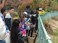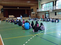 今回は体育館でドミノを使った遊びと校下でのバードウォッチングを行いました。あいにく