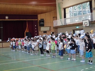 9月17日(火)から20日(金)の中間休みと昼休みに色別の応援練習を行いました。これまで朝学習に学級ごとに練習してきた成果を全体で出し合いました。どの色も応援団員を中心に、大きな声が出ていて運動会に向けての気持ちの高まりが感じられました。